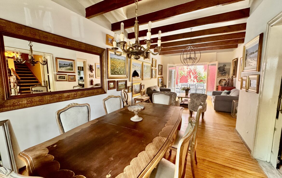 Casa desarrollada en tres plantas ubicada en una exclusiva cuadra residencial de Pocitos. hall de recepción que conecta con el living-comedor y un estar definido, distribuyendo los espacios de manera cómoda y funcional., baño social y una cocina con comedor diario, con acceso directo a un patio grande cómodo con barbacoa cerrada y baño , pensada para encuentros y reuniones.En el entrepiso, la propiedad cuenta con un dormitorio con baño completo. La planta alta dispone de cuatro dormitorios, uno de los cuales ofrece acceso, mediante escalera interna, a un playroom versátil, que también puede ingresarse desde el patio., 2 baños completos